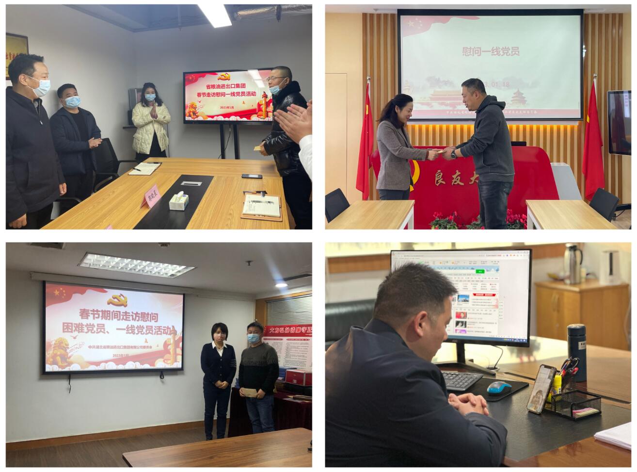 為深入貫徹落實黨的二十大精神和中央經濟工作會議精神,認真落實省委十二屆三次全體會議暨省委經濟工作會議部署,把黨的關懷、工會組織的溫暖及時送到廣大職工群眾的心坎上,按照湖北農發集團黨委、工會的工作安排,糧油進出口集團成立走訪慰問領導小組,在2023年春節期間組織開展春節走訪慰問活動,集團領導班子分別帶隊走訪慰問了老黨員、老干部、生活困難黨員、一線黨員和困難群眾。