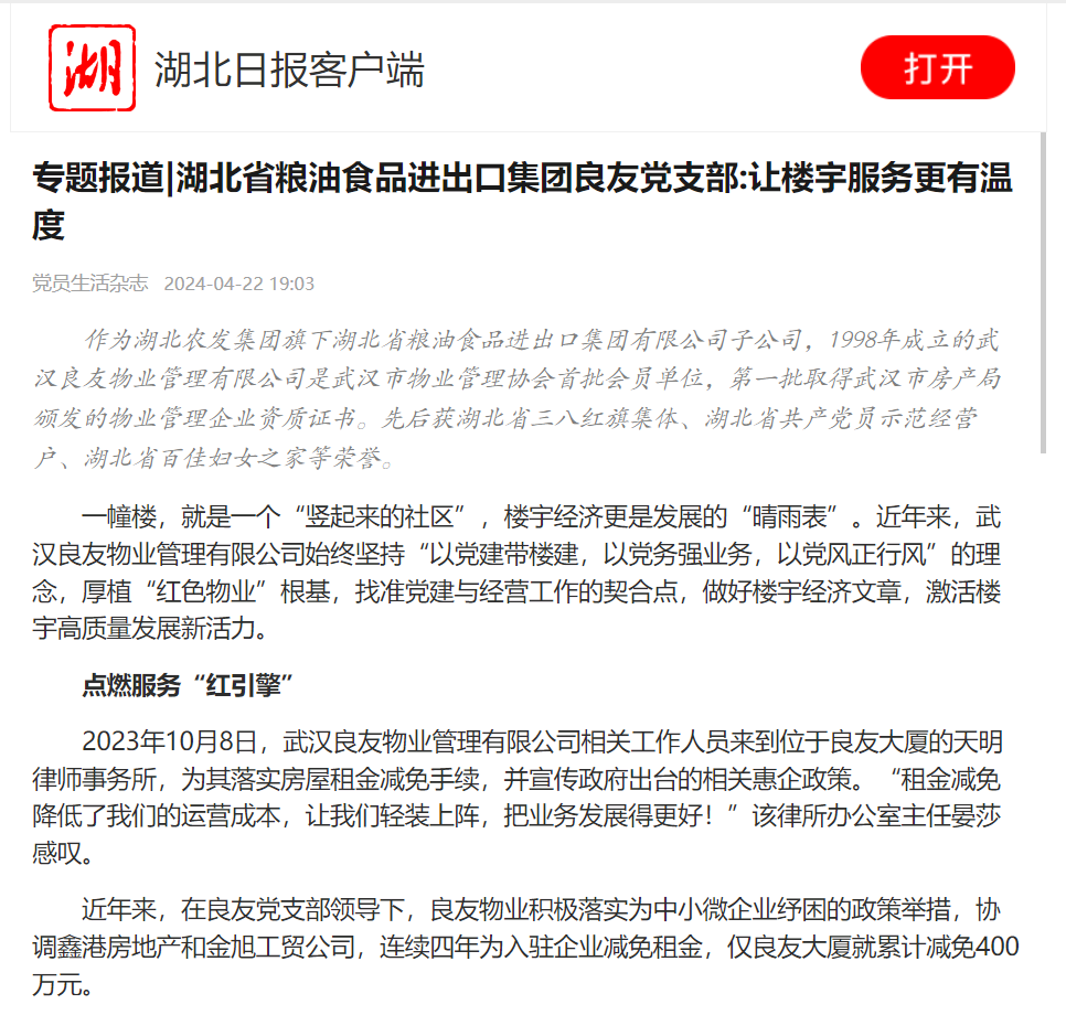 湖北日報:專題報道|湖北省糧油食品進出口集團良友黨支部:讓樓宇服務更有溫度