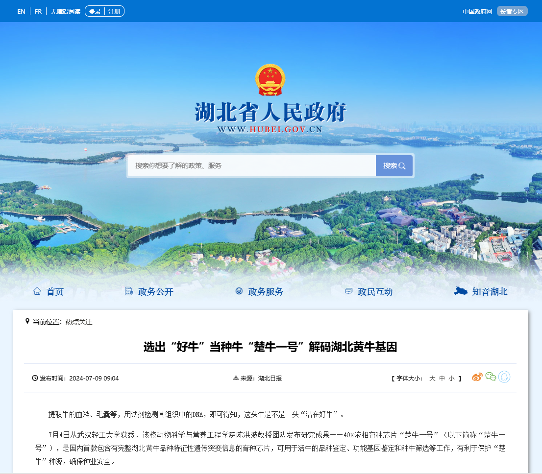 湖北省人民政府:選出“好牛”當(dāng)種牛“楚牛一號(hào)”解碼湖北黃牛基因