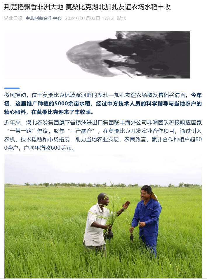 中非創新合作中心:荊楚稻飄香非洲大地 莫桑比克湖北加扎友誼農場水稻豐收