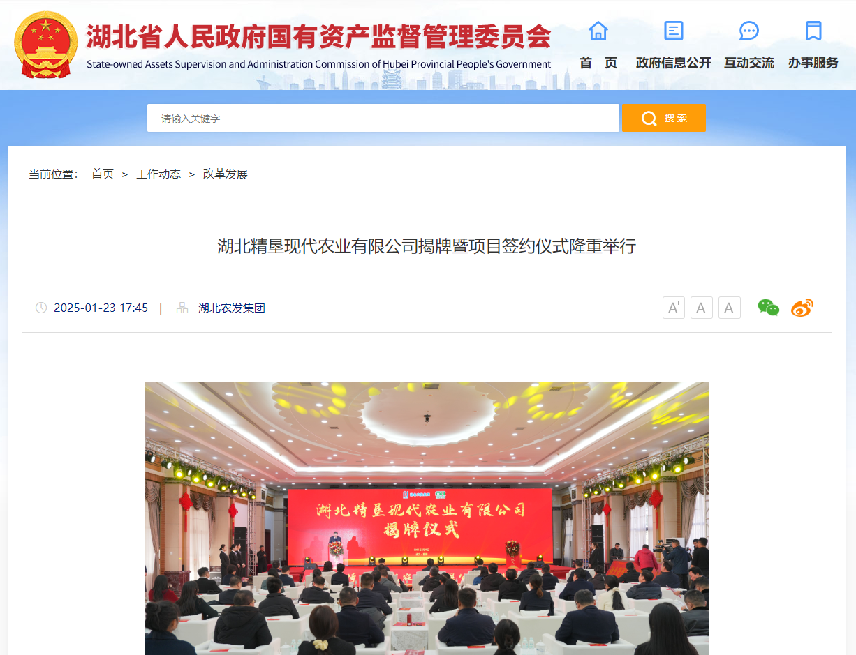 湖北省國資委:湖北精墾現(xiàn)代農(nóng)業(yè)有限公司揭牌暨項目簽約儀式隆重舉行